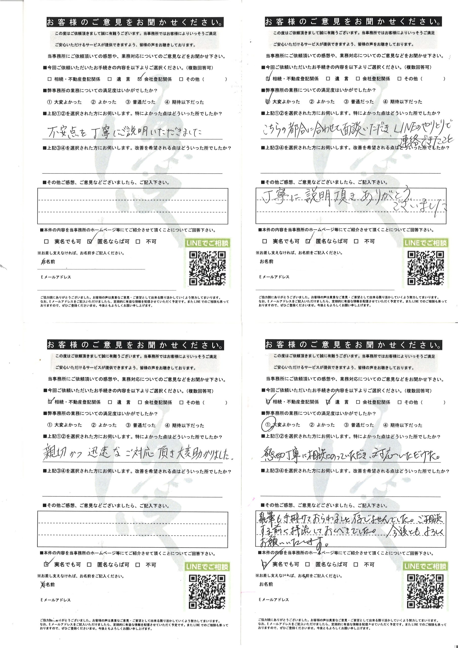 数ある事務所の中から当事務所をお選びいただき、またアンケートにご協力いただきましてありがとうございました。
